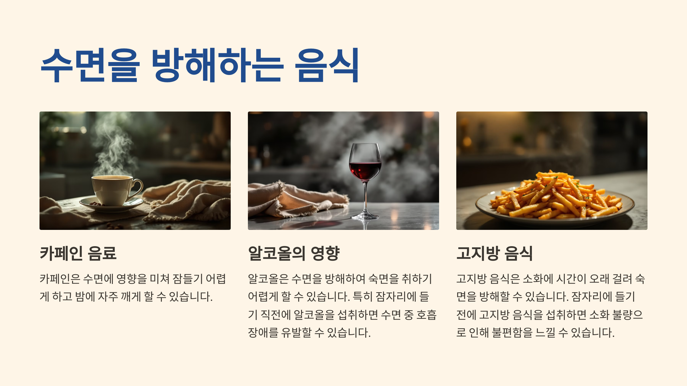 3. 수면의 질을 저하시키는 음식과 피해야 할 식습관